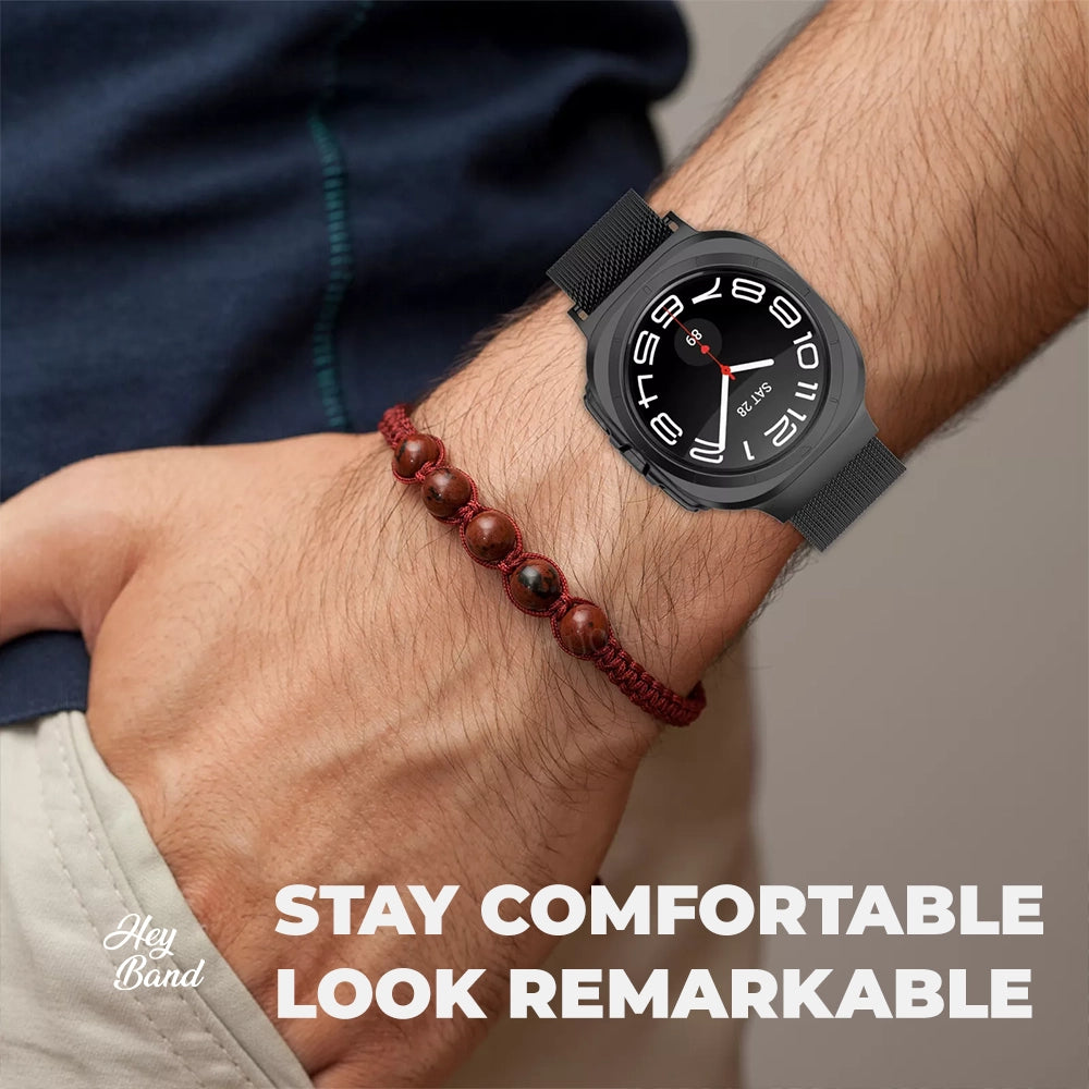 Zahvaljujoč trdni konstrukciji in visokokakovostnim materialom je pašček odporen in udoben za nošenje ter hkrati daje eleganten videz vašim Galaxy Watch Ultra.