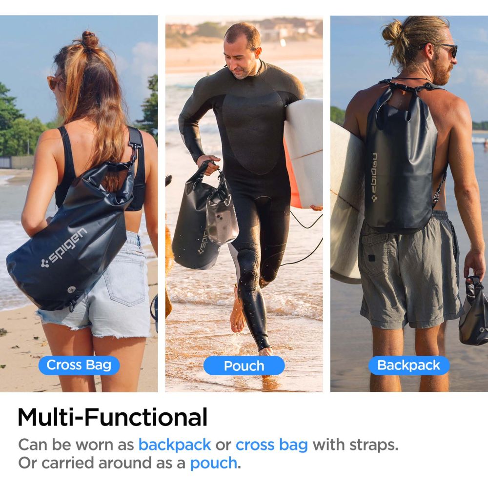 Funkcionalni komplet dveh vodoodpornih vrečk (20L in 2L) A630 od Spigen. Zaradi svoje lahke in vodoodporne konstrukcije so idealne za izvajanje vodnih športov, pohodništvo ali kampiranje. Dvojni zaklepni sistem zagotavlja, da bodo predmeti, ki jih pustite znotraj, zaščiteni pred vdorom vode.