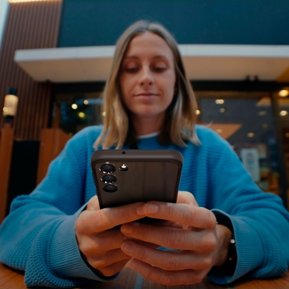 Ultra Hybrid od Spigen je enodelno ohišje. Sestavlja ga prozorna plast iz polikarbonata, ki pokriva robove in zadnji del telefona. Ima odporen gumijast okvir, izdelan iz mehke termoplastične snovi, ki dodatno ščiti napravo pred padci. Ohišje ne omejuje možnosti brezžičnega polnjenja.