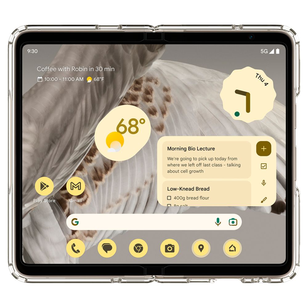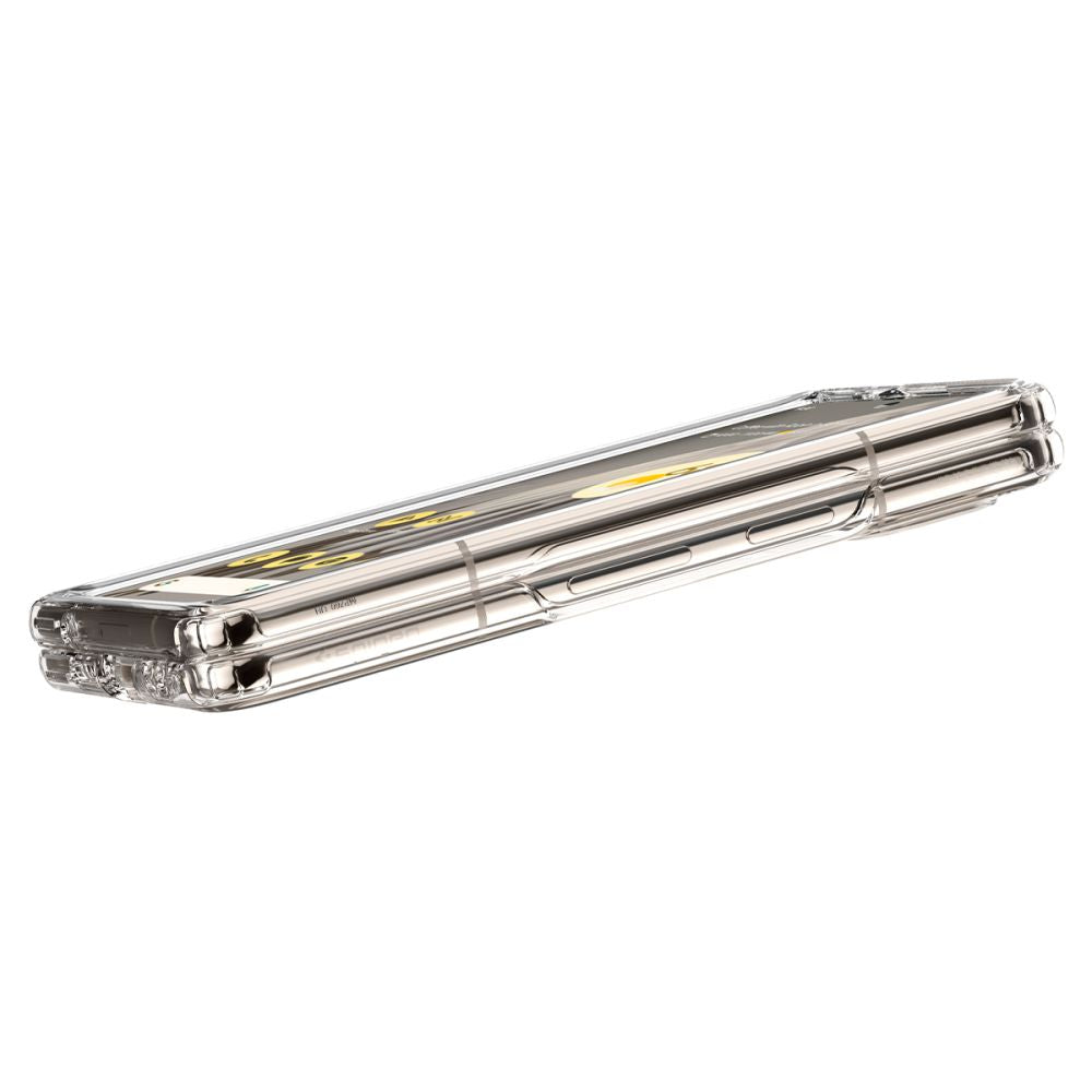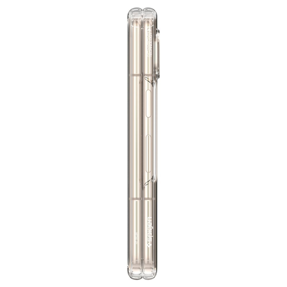 Ultra Hybrid od Spigen je enodelna ovitka. Sestavlja jo prozorna plast iz polikarbonata, ki pokriva robove in zadnji del telefona. Ima odporen gumijast okvir, izdelan iz mehke termoplastične snovi, ki dodatno ščiti napravo pred padci. Ovitka ne omejuje možnosti brezžičnega polnjenja.